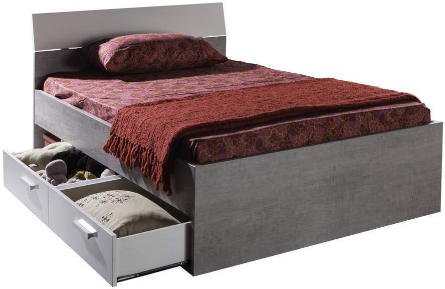 Lit une place et demie avec tiroirs en bois blanc