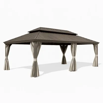 Pavillon de jardin en aluminium avec rideaux en polyester