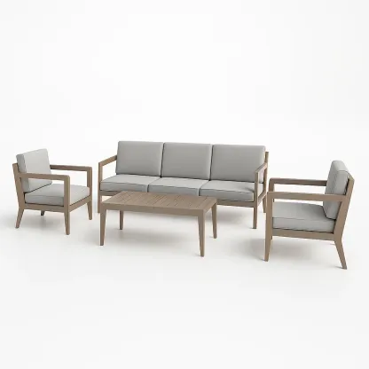 Contenu : 1 sofa, 2 fauteuils, 1 table basse, 4 coussins d'assise, 4 coussins de dossier