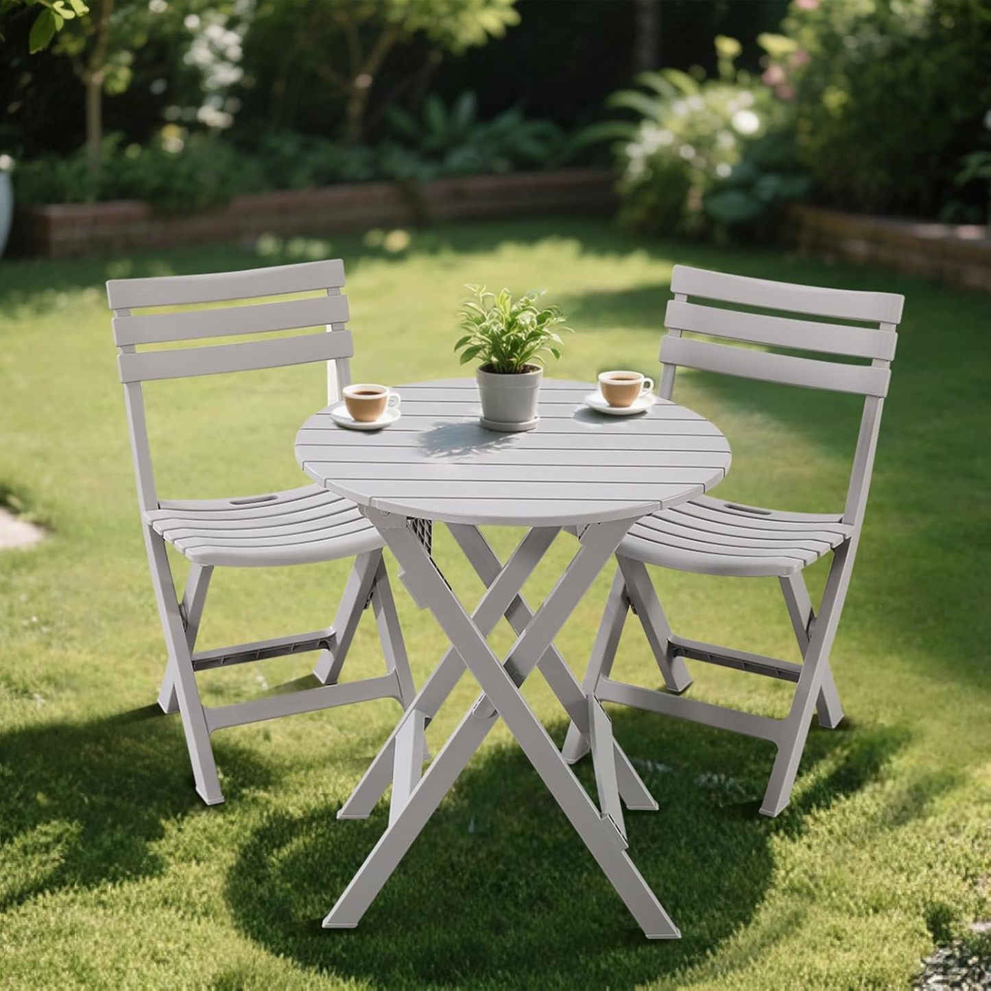 Set de Bistro Pliable 3 Pièces - Table et Chaises Portables d'Extérieur avec Dossier